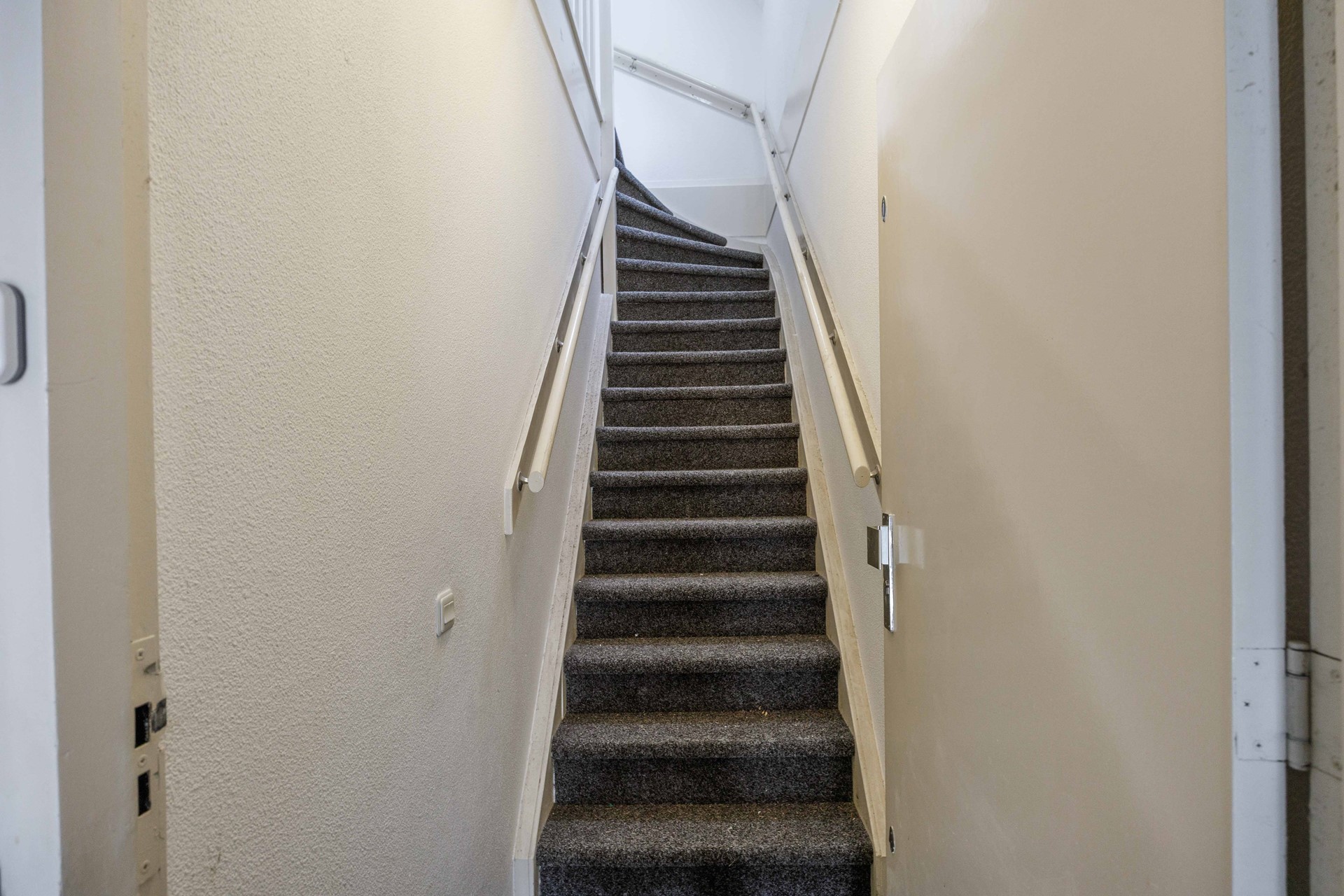 Via de gemeenschappelijke hal heb je toegang tot het gedeelde dakterras op de eerste verdieping, dat je slechts met één andere bewoner deelt.