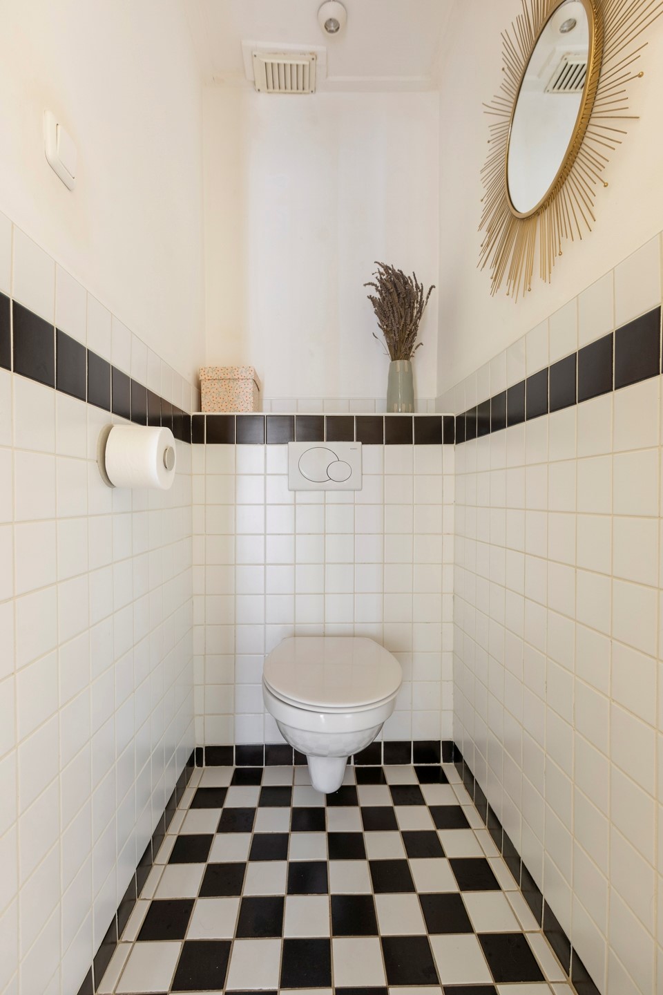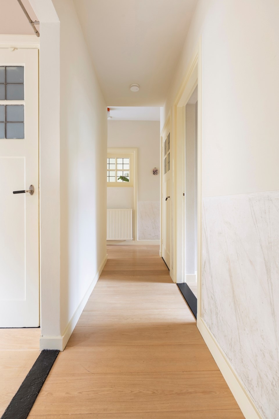Via de authentieke hal, met de originele wandtegels, zijn alle vertrekken gemakkelijk bereikbaar.