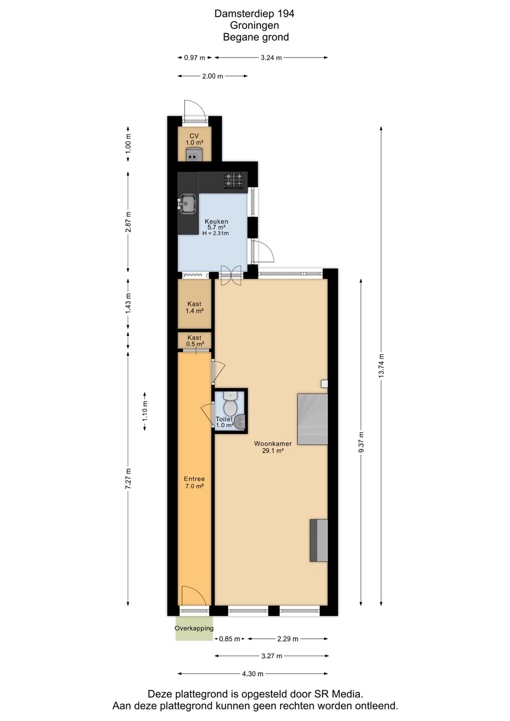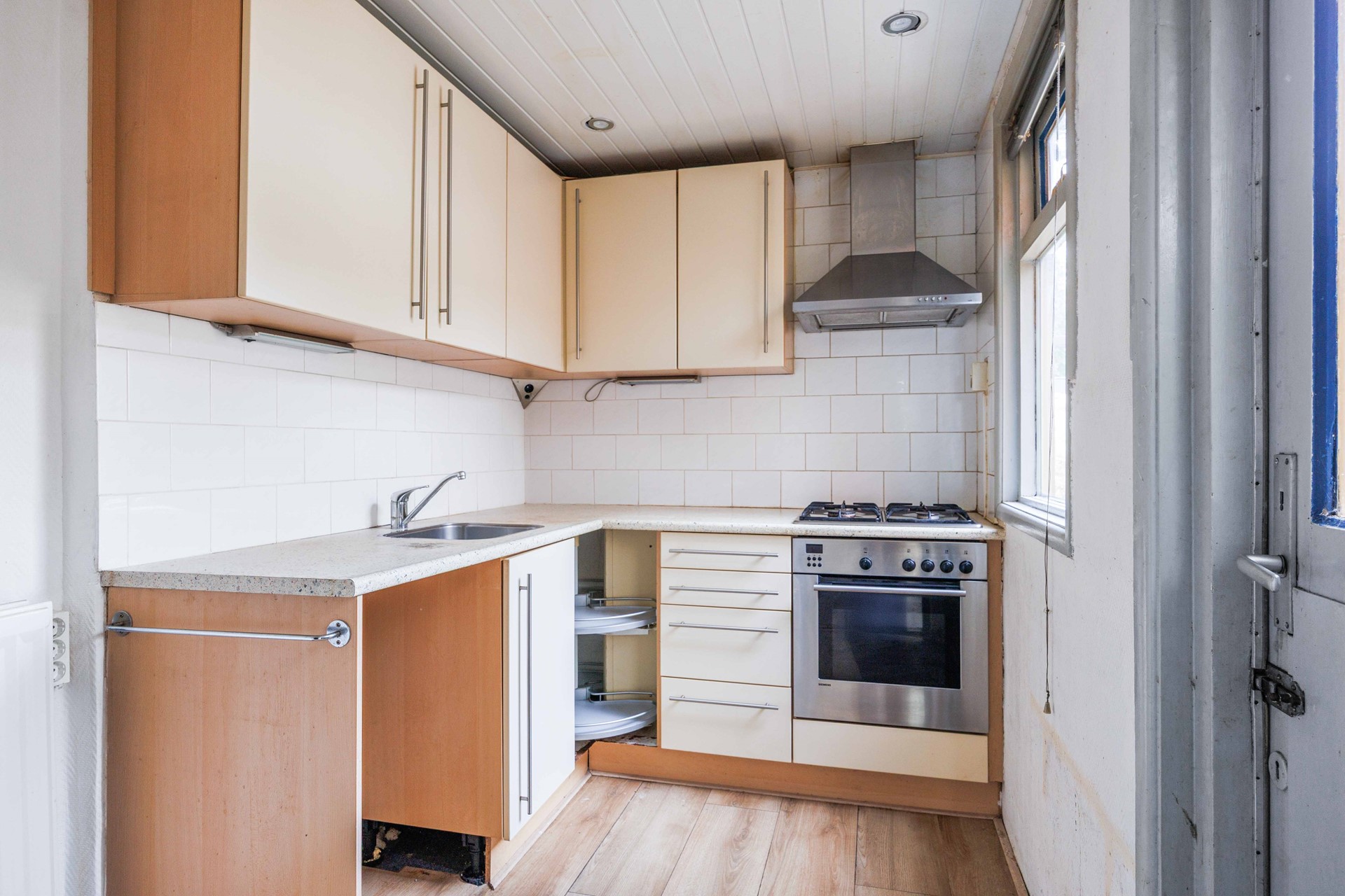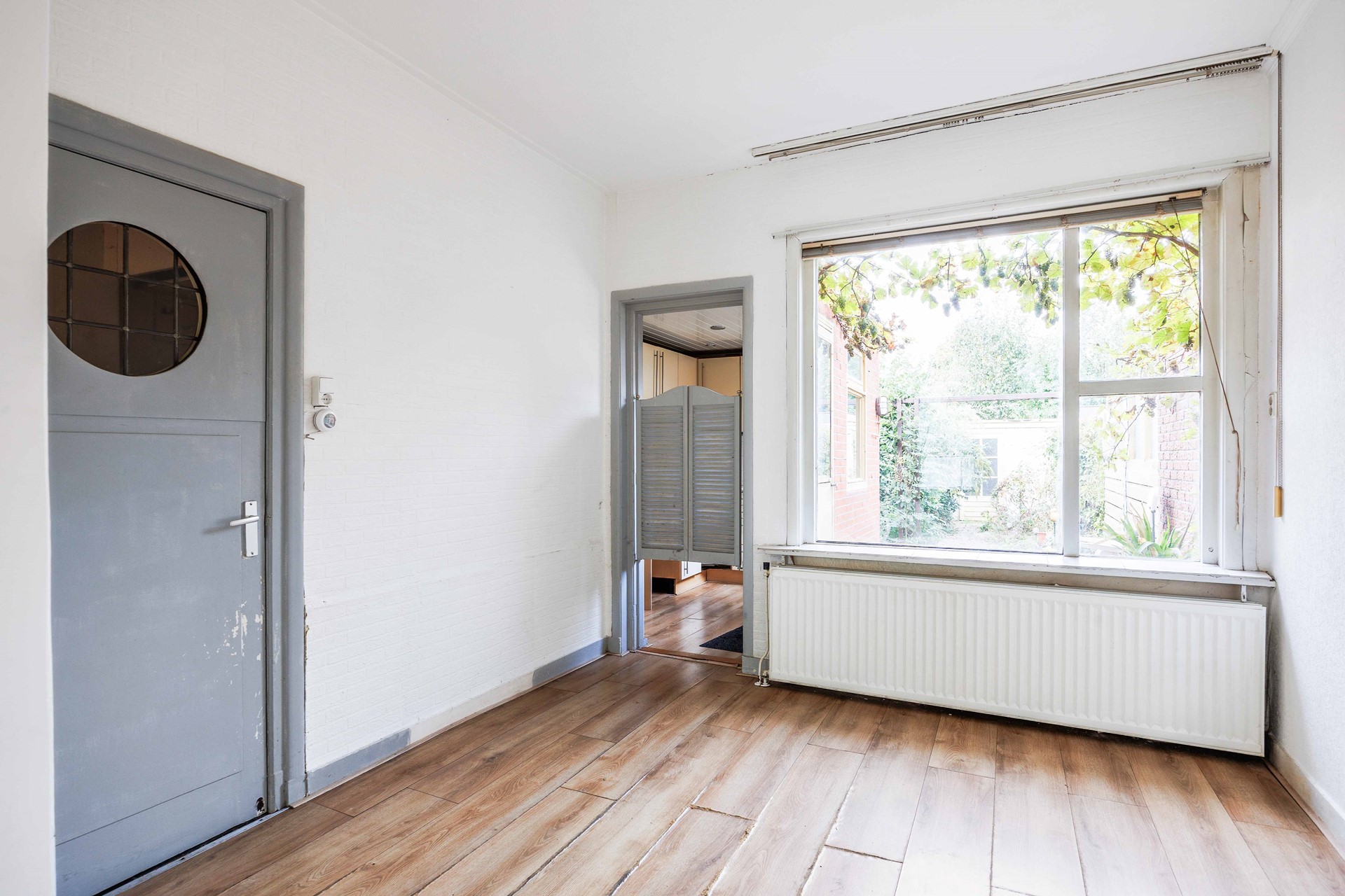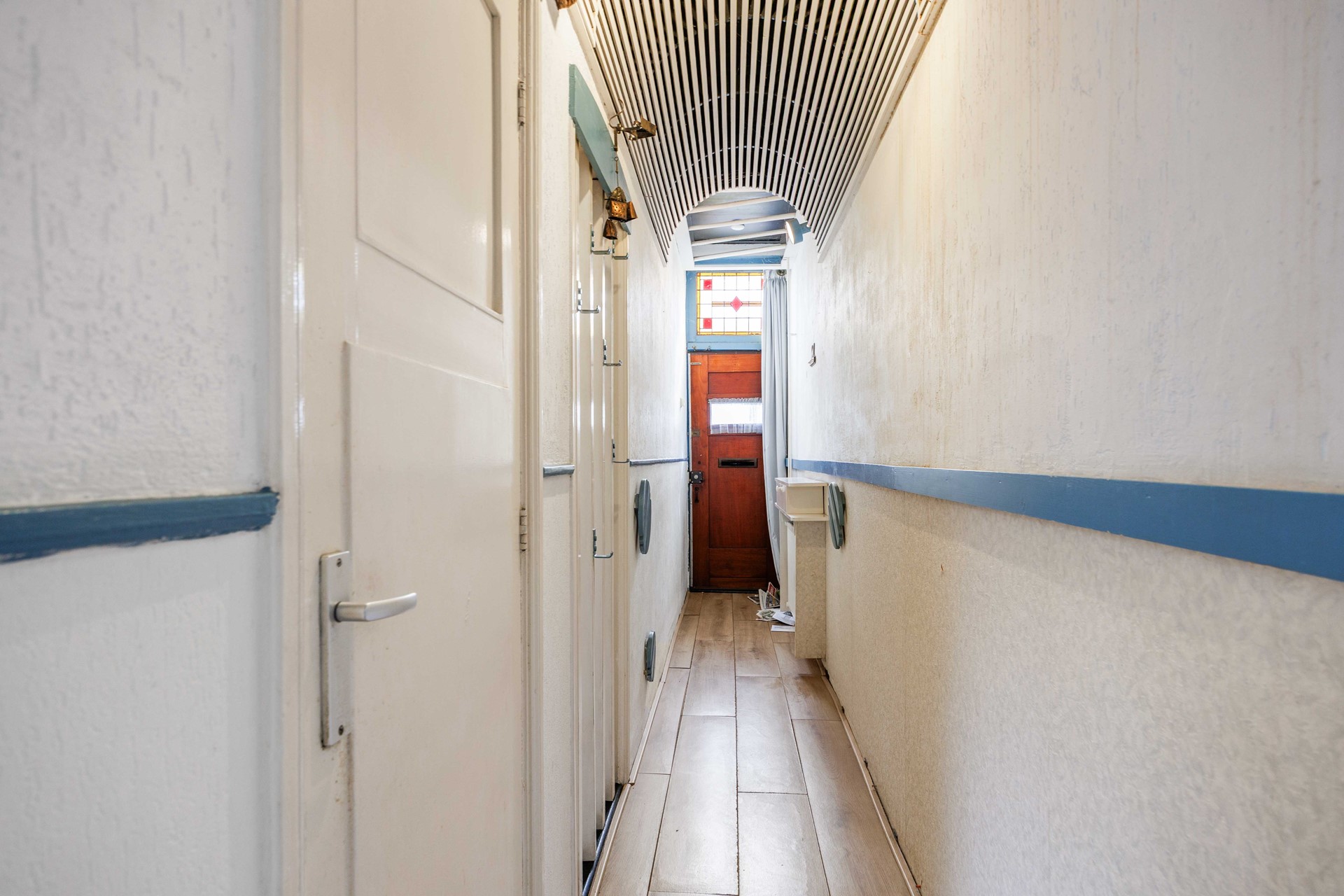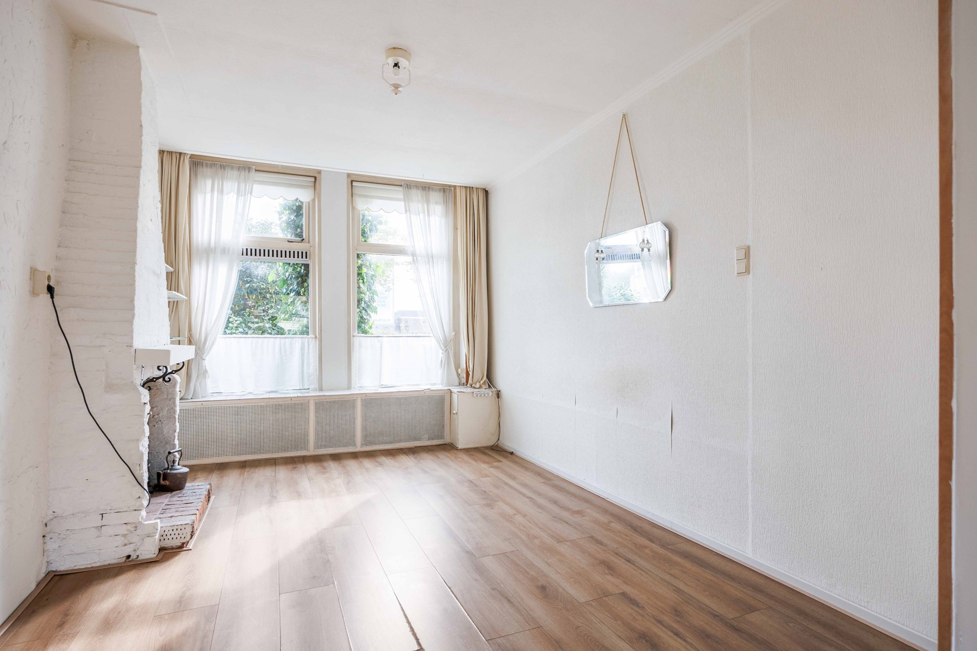 Je komt vanaf de straat, via de voortuin binnen in een lange hal. Deze heeft een toilet en geeft toegang geeft tot de woonkamer van circa 29 m². Het kenmerkt zich door de hoge plafonds en hoge ramen aan de voorzijde. Aangrenzend aan de woonkamer bevindt zich de keuken van 6 m², die voorzien is van de basisbenodigdheden en ruime inbouwkast en uitkijk op de tuin. Bovendien is er een mogelijkheid om de woning aan de achterzijde uit te breiden. Vanuit de keuken stap je zo de diepe achtertuin in van maar liefst 13 meter.
