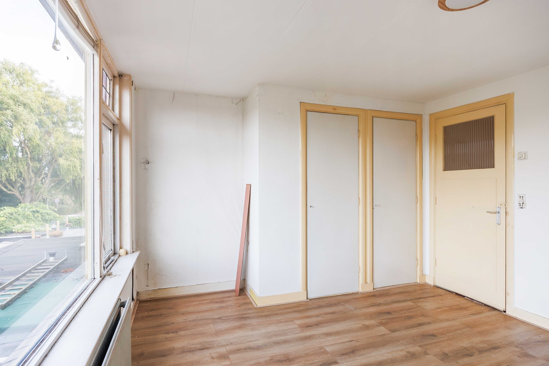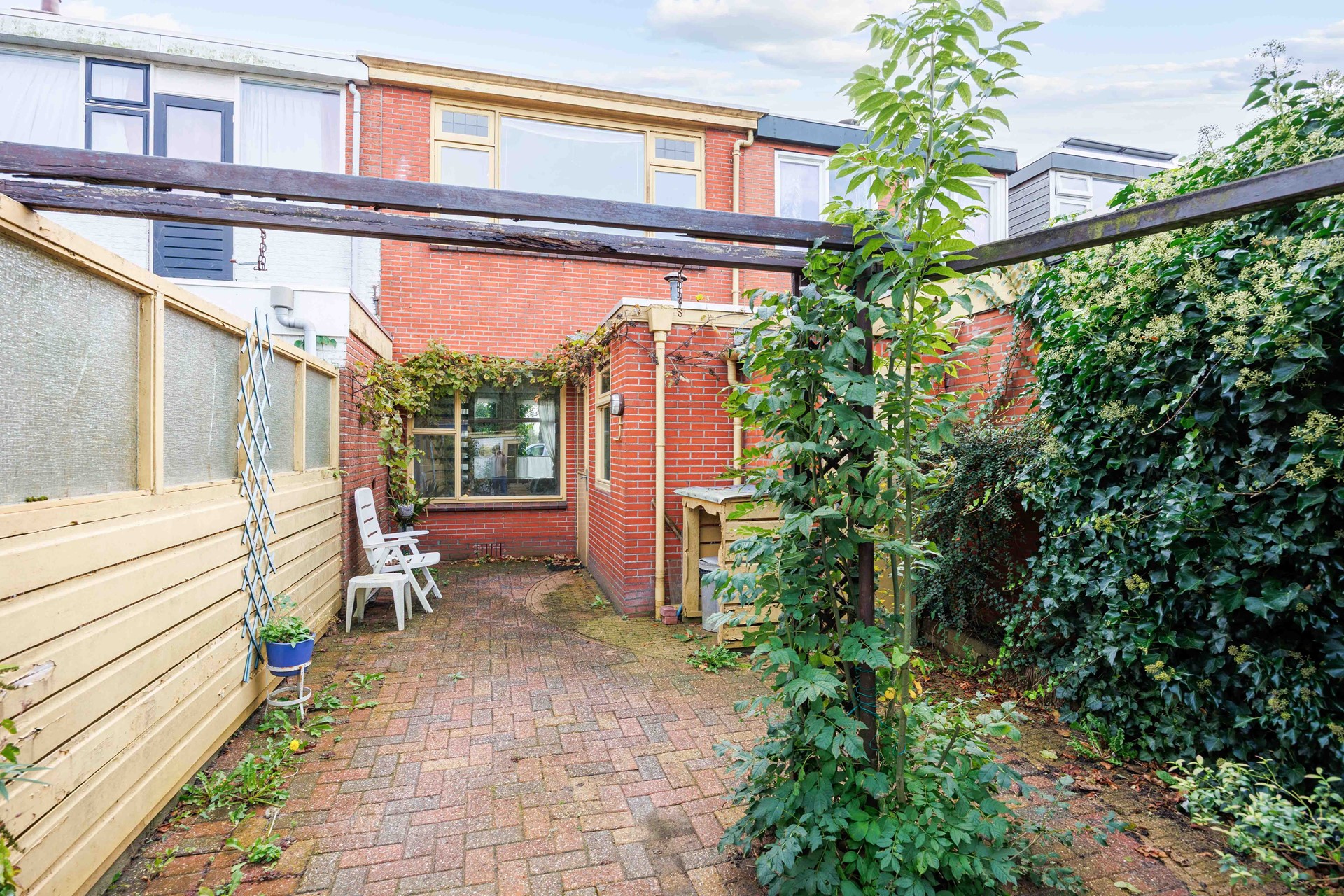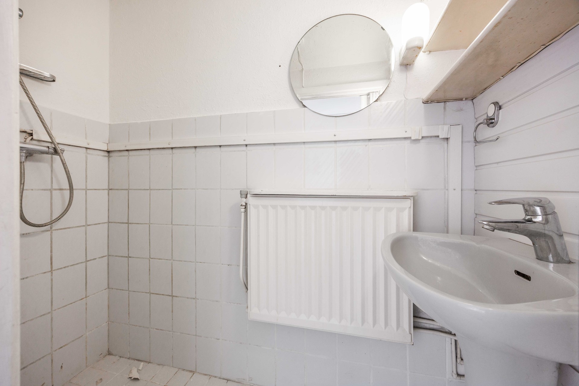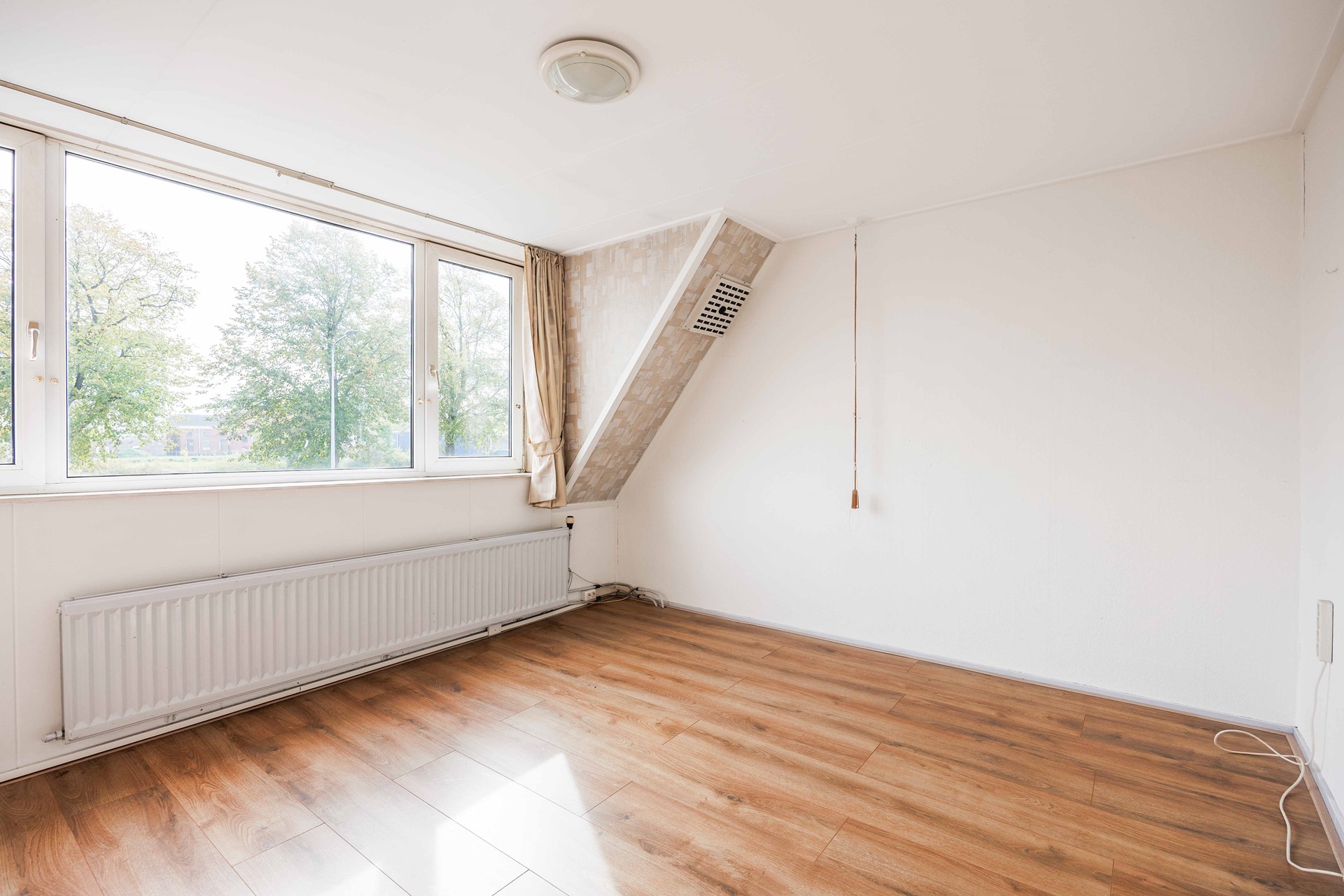 De trap in de woonkamer leidt naar de eerste verdieping, waar zich een ruime hal, twee slaapkamers (ca. 13 m² en 12,3 m²) met beide handige inbouwkasten en de badkamer bevinden. Dankzij de brede dakkapel op de voorkant is er op deze verdieping extra ruimte ontstaan. Ook op de achterkant van de woning is een plat dak en dus geen schuine wanden. Achterin de tuin staat een schuur (ca. 9,5 m²), ideaal als berging of voor het uitoefenen van een hobby.