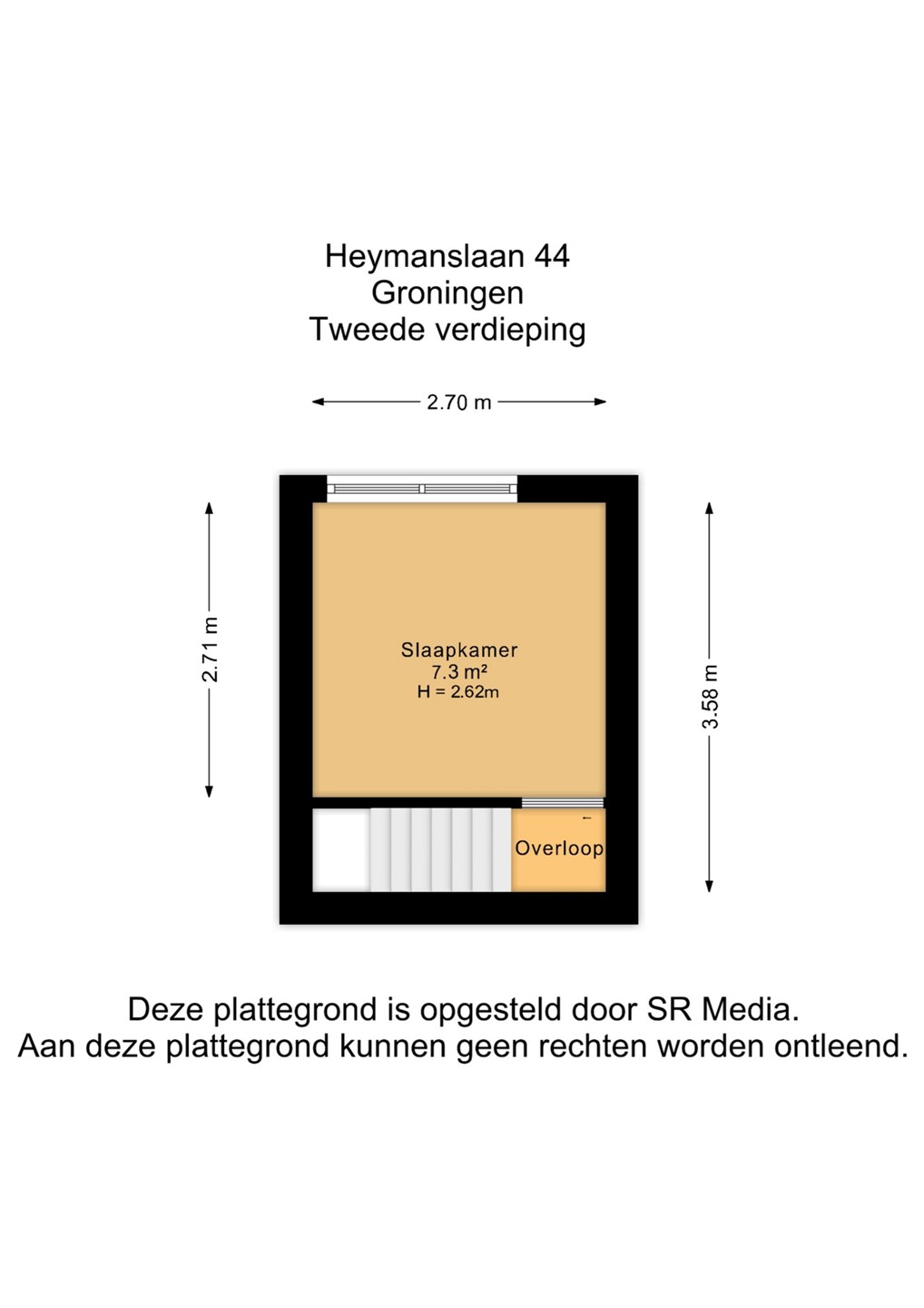 Op de tweede verdieping bevindt zich de tweede slaapkamer, welke circa 7 m² groot is.