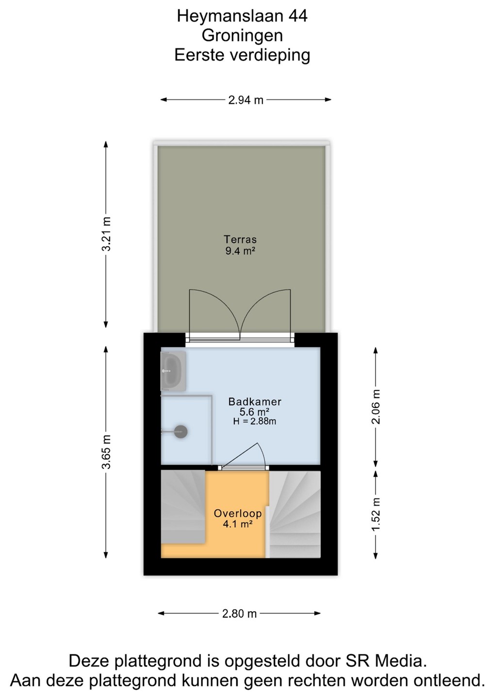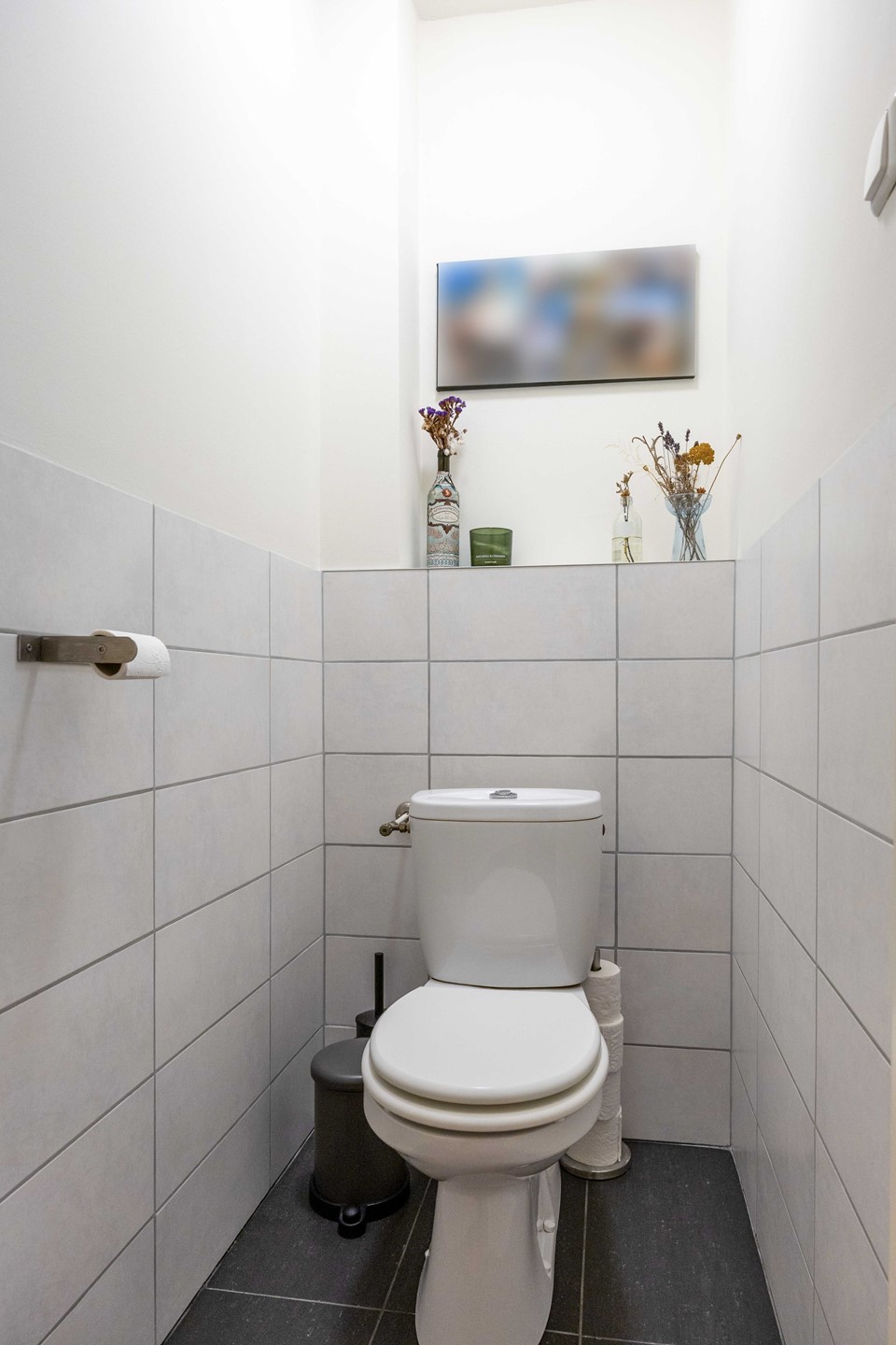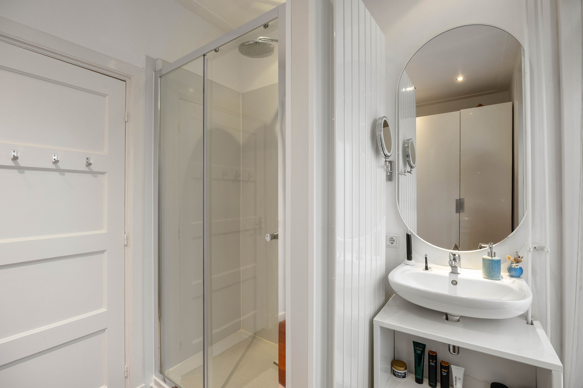 Op de eerste verdieping bevindt zich de badkamer, die beschikt over een douche en wastafelmeubel. Via de openslaande deuren heb je toegang tot het dakterras van ruim 9 m², gelegen op het zuidwesten.