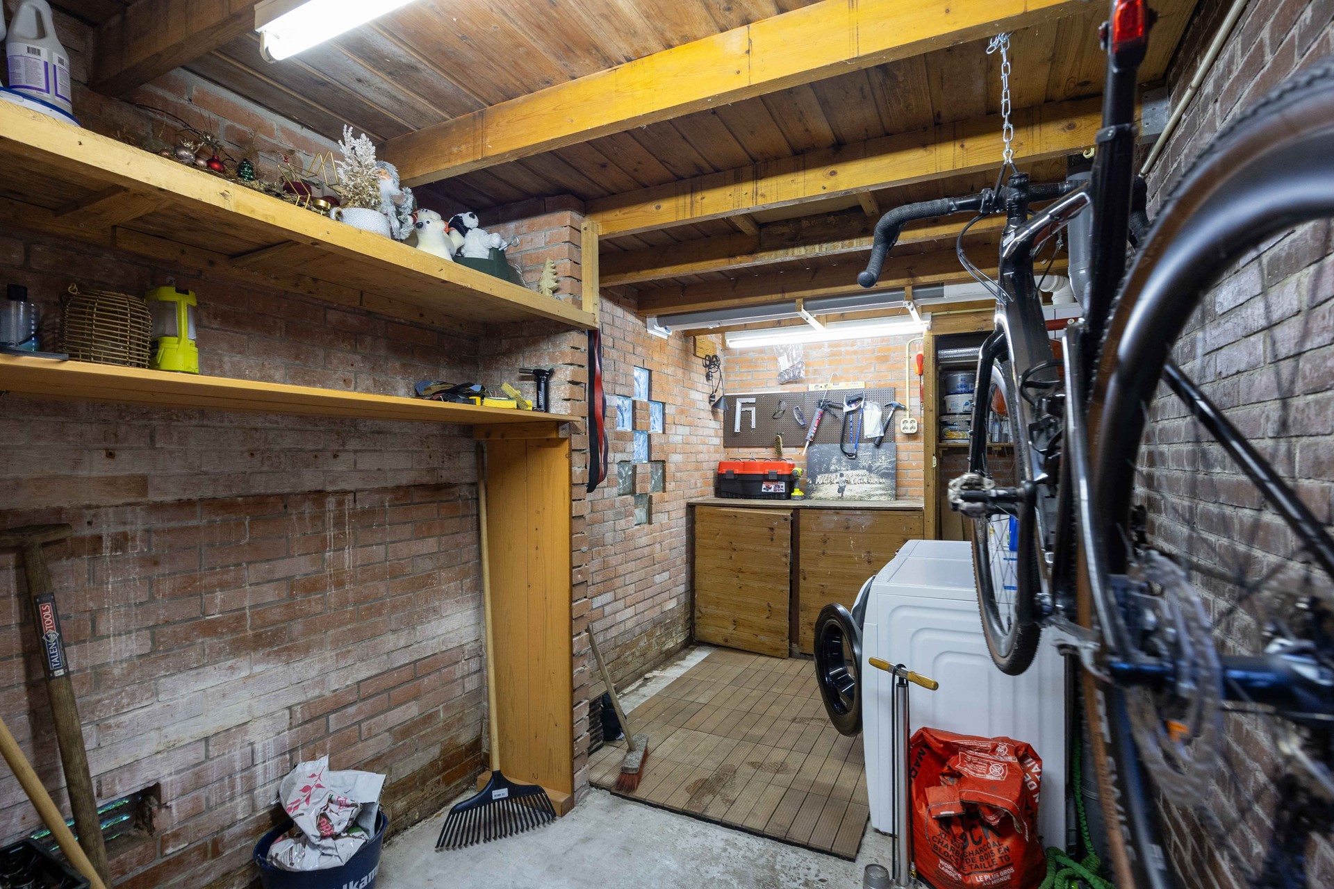 De achtertuin is gesitueerd op het zuidwesten en is de ideale plek om heerlijk van de zon te genieten. Deze beschikt over een achterom en een stenen berging, waar de installaties zich bevinden, net als de aansluitingen voor de wasmachine.