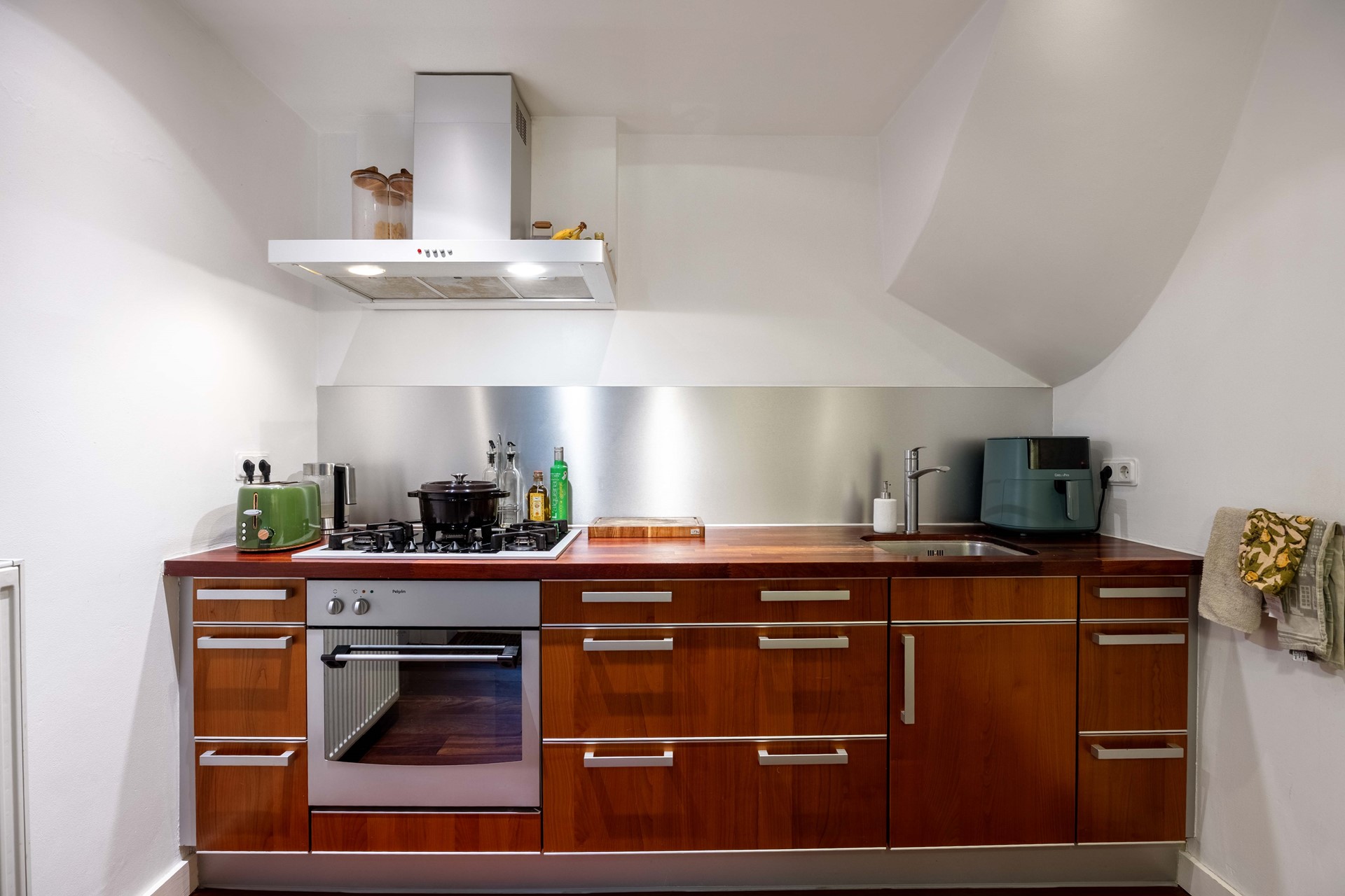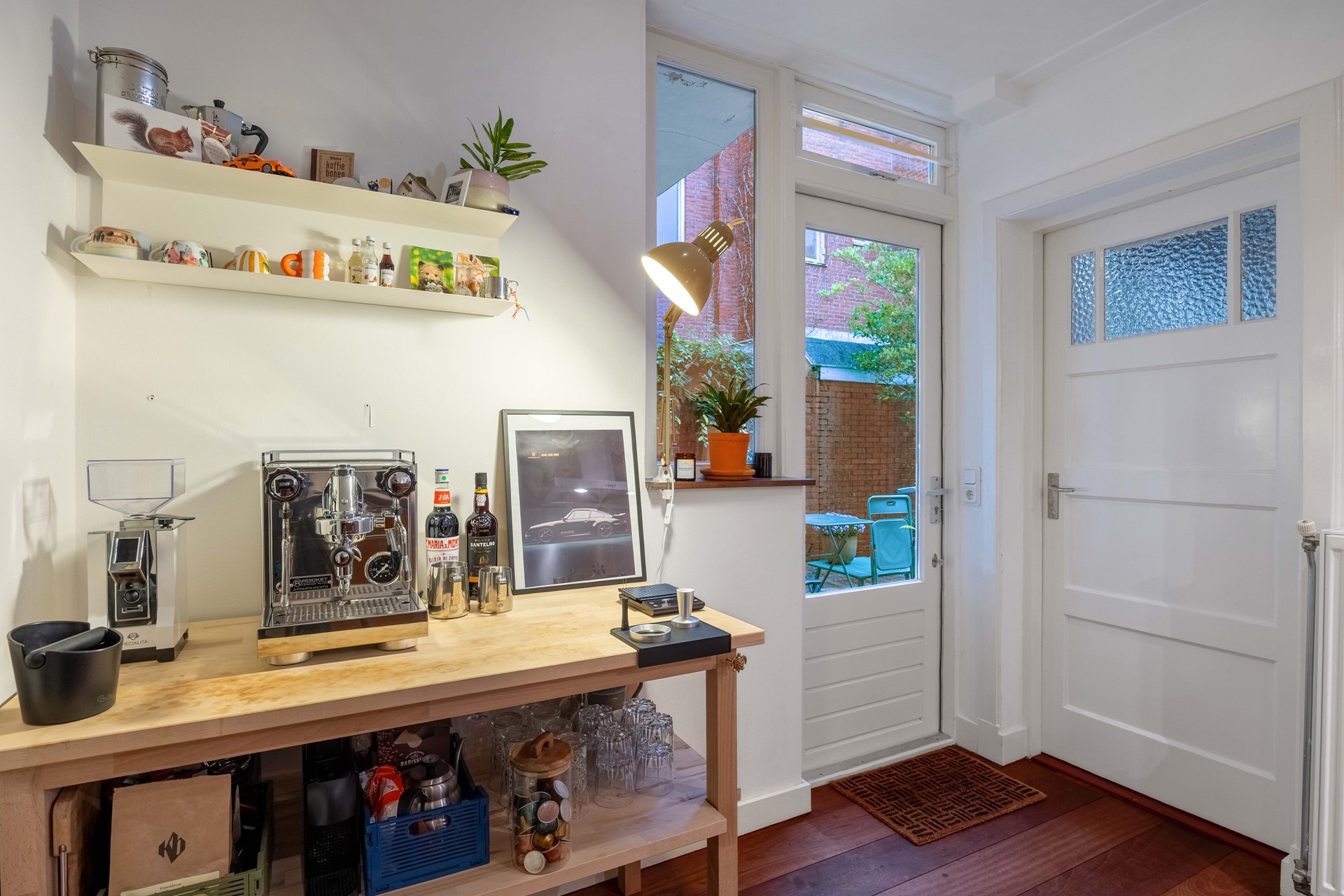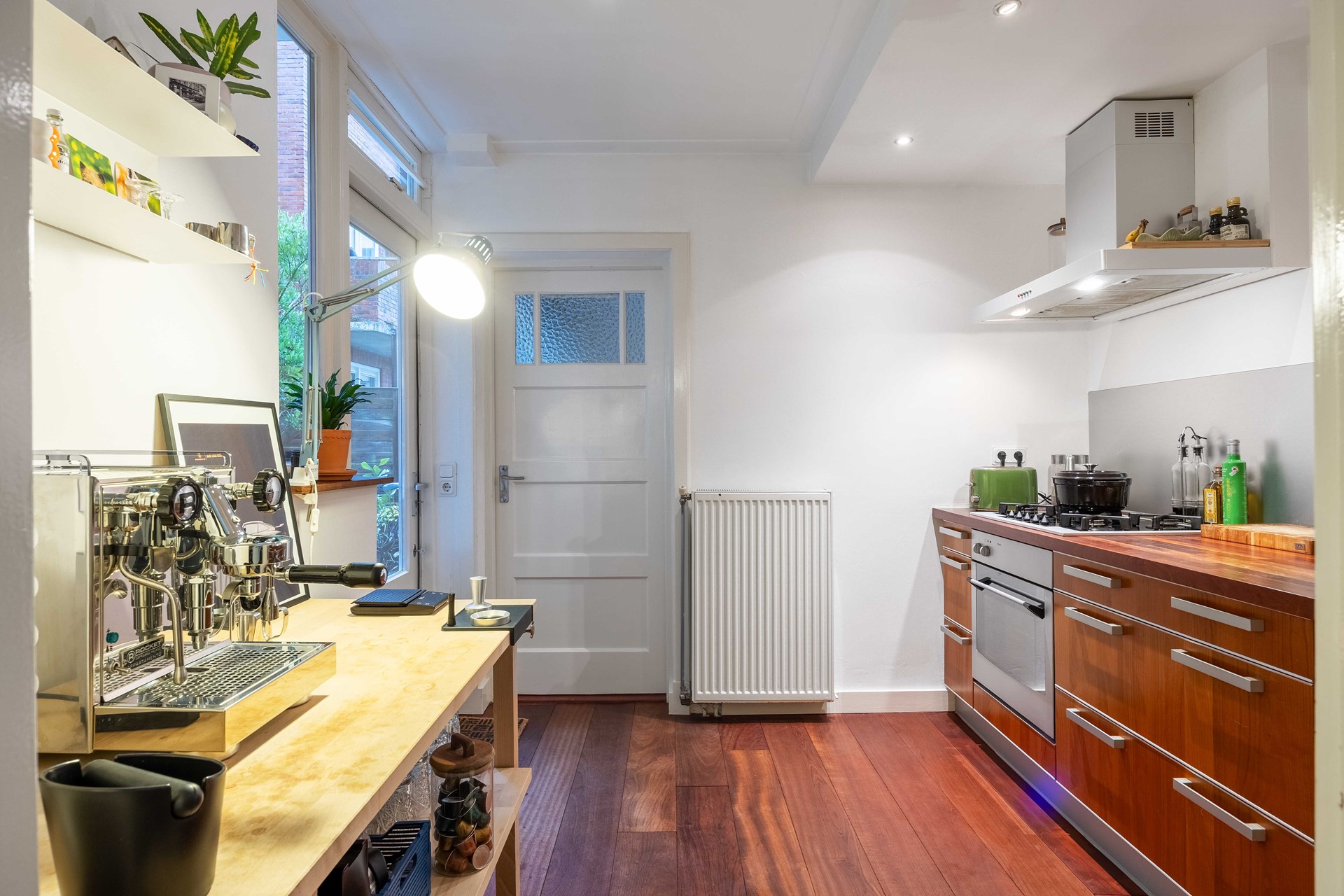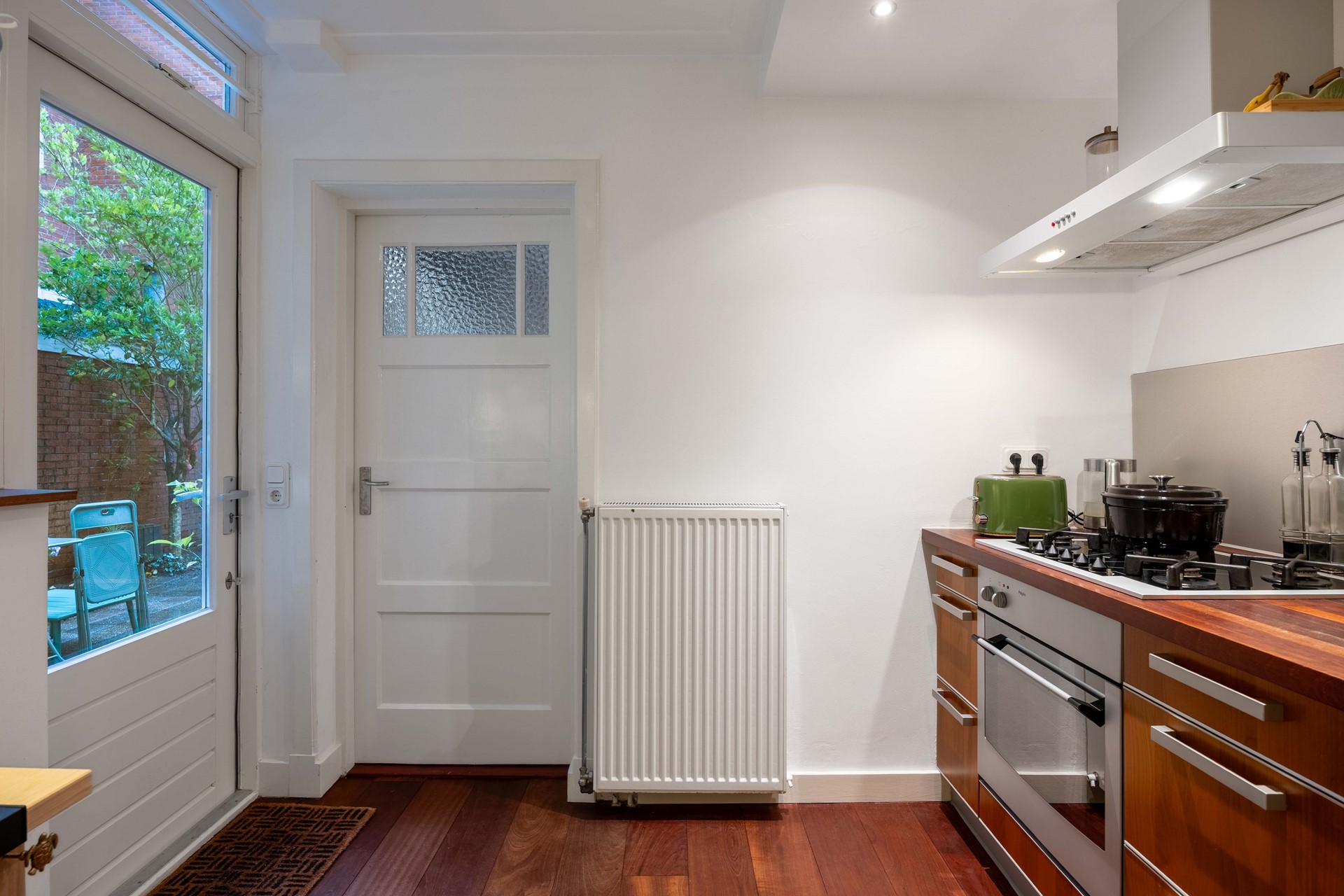 Bij binnenkomst sta je in de hal met tochtportaal. Deze geeft toegang tot de ruime woonkamer van circa 31 m² groot. De woonkamer is voorzien van een visgraat parketvloer en geeft middels authentieke openslaande deuren toegang tot de besloten tuin. Via de hal loop je langs het toilet en bergruimte, door naar de keuken. Deze wordt keurig onderhouden en beschikt over meerdere voorzieningen, zoals een gaskookplaat, ingebouwde oven en afzuigkap. De keuken (ca. 8 m²) voorziet overigens in voldoende ruimte om een koelkast en/of vriezer te plaatsen. Via de keuken bereik je de eerste slaapkamer (circa 9 m²) en heb je toegang tot de tuin.