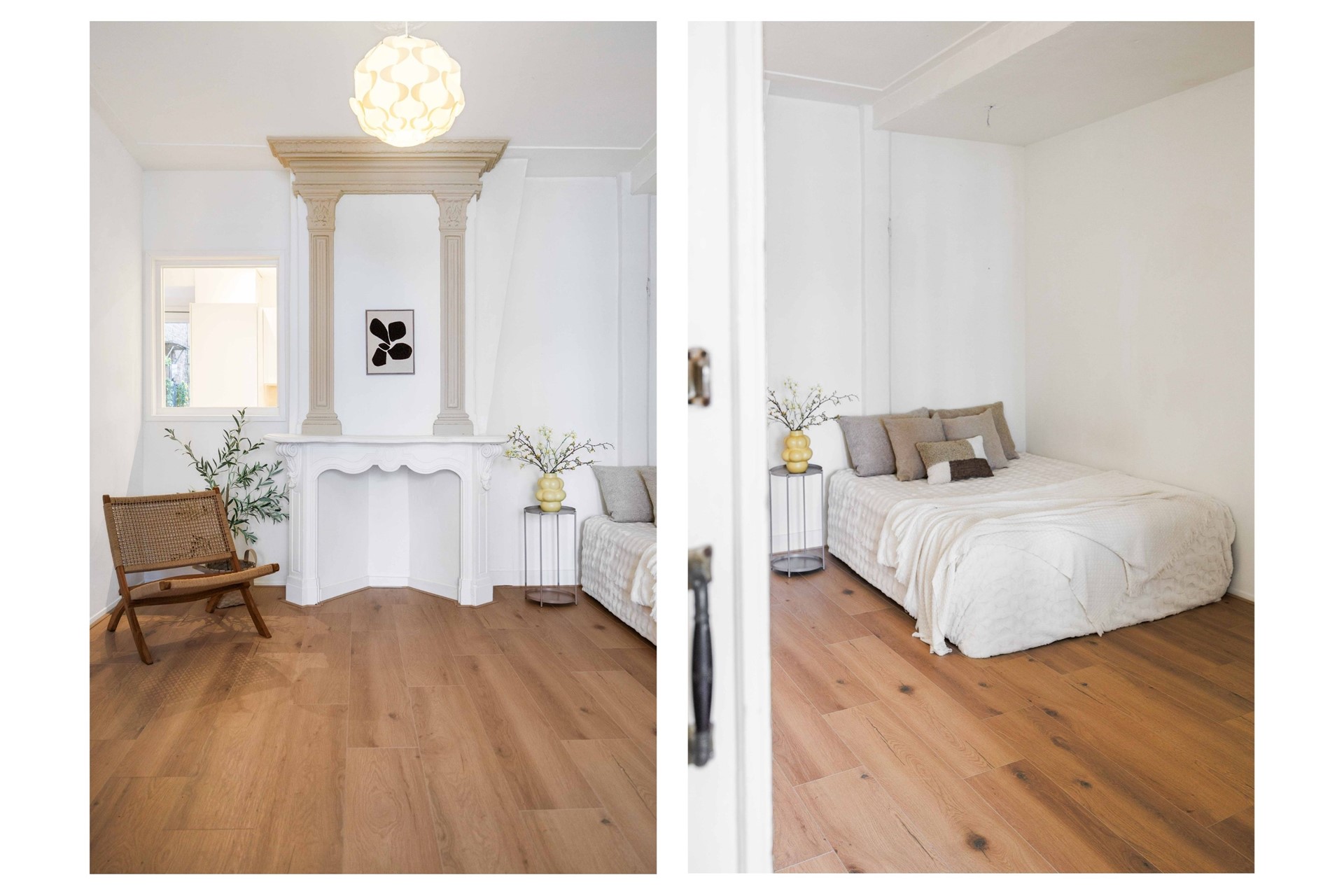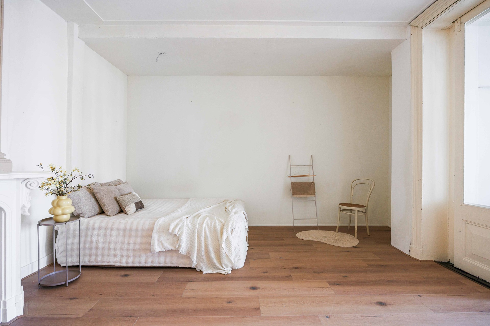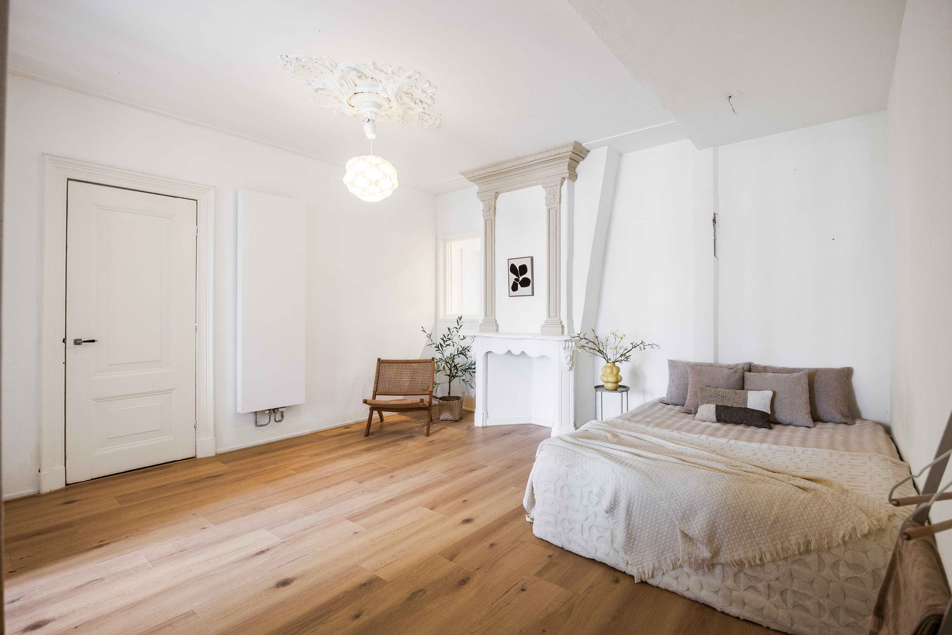 Achter de ensuite-deuren bevindt zich de royale slaapkamer (ca. 19,5 m²). Deze ruimte biedt volop mogelijkheden voor extra kastruimte of een werkhoek.