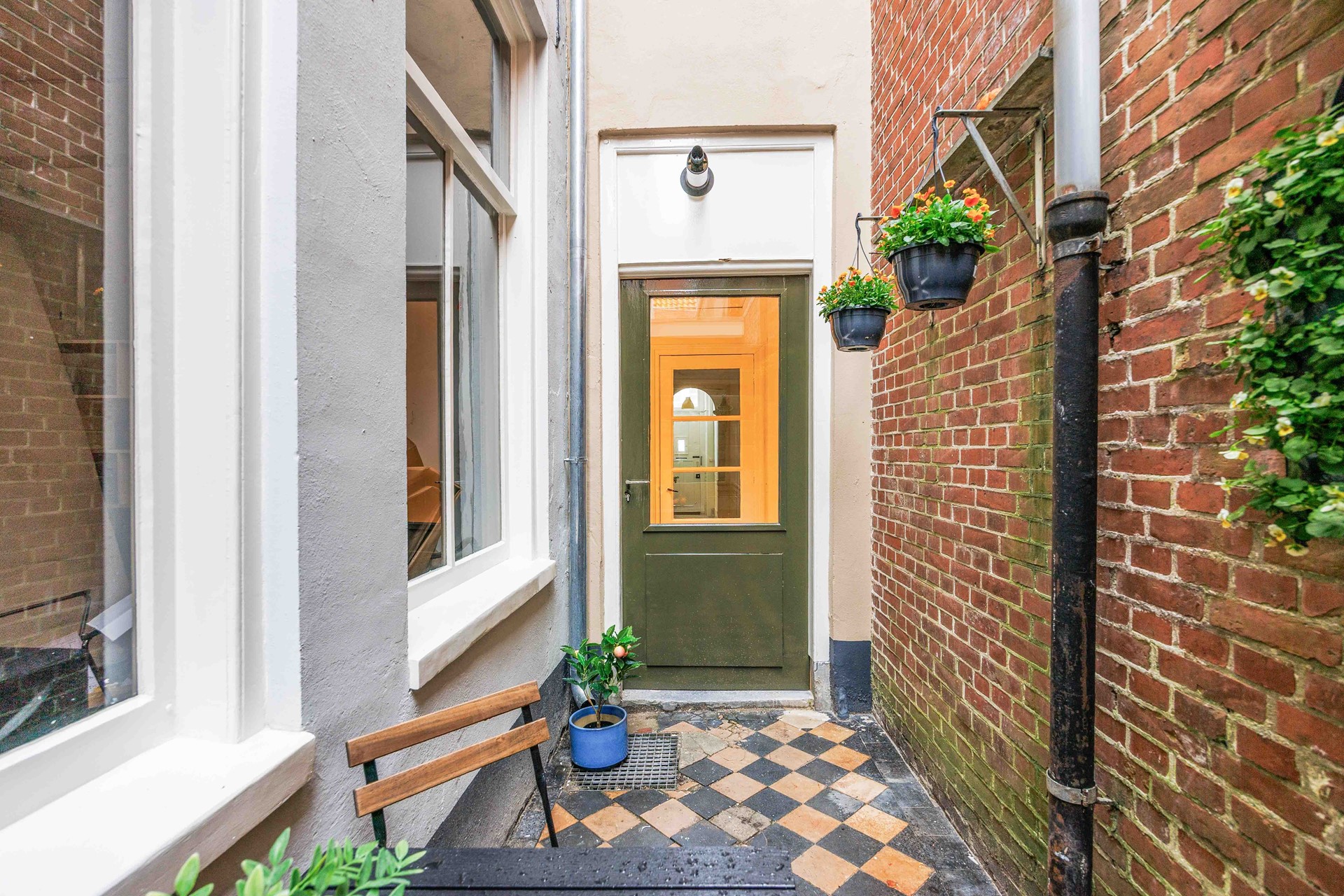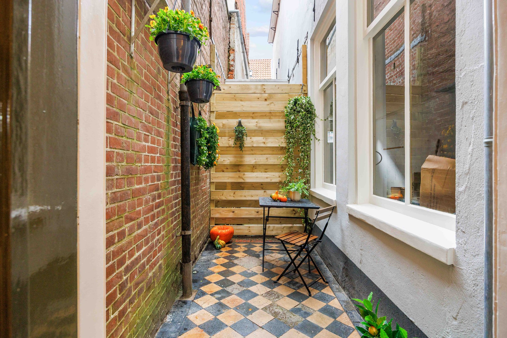 Uniek aan dit appartement is de buitenruimte, bereikbaar via de hal. Een fijne plek om een zitje te creëren.