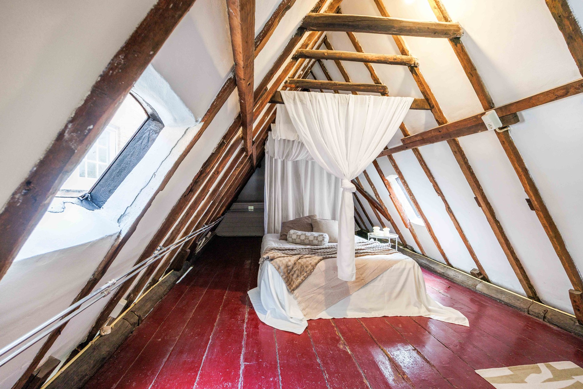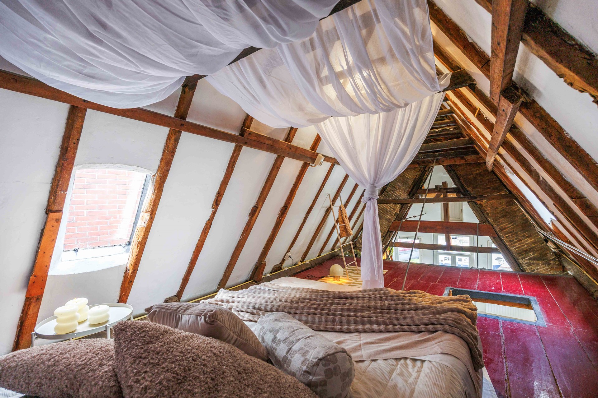 Tot slot brengt een tweede trappetje je naar een bijzondere slaapverdieping van circa 18 m², gelegen op zolder.